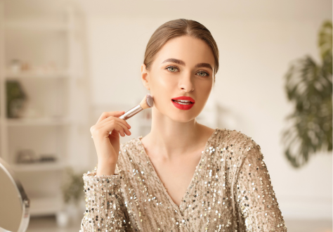 Decorative,Cosmetics,And,Makeup,Brushes,On,A,White,Background,,Top